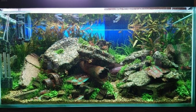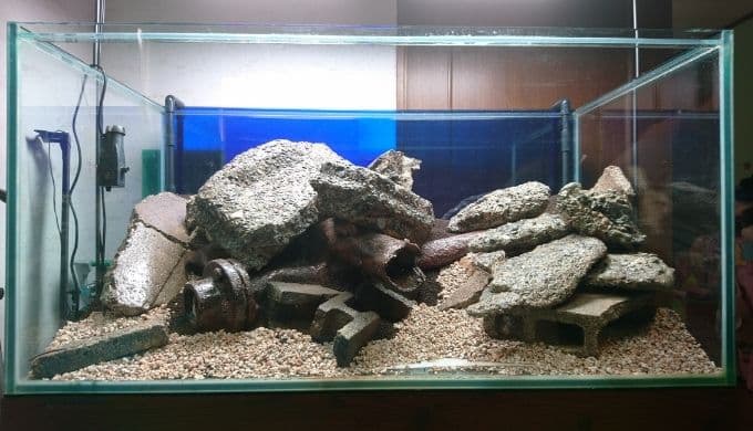 迫力を表現する場合は「水槽の高さの半分」よりも高い位置に石や流木を配置するようにしましょう。