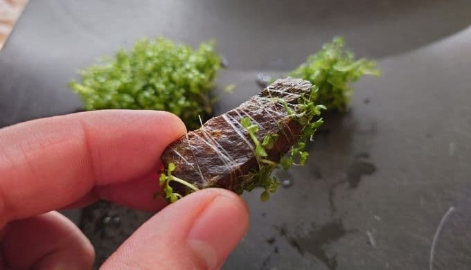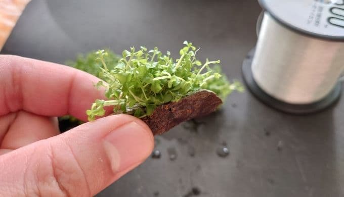 多くの水草は「動かない状態をキープ」できれば成長を始めるので、同様に石に巻きつけて配置するだけでもレイアウトすることができます。