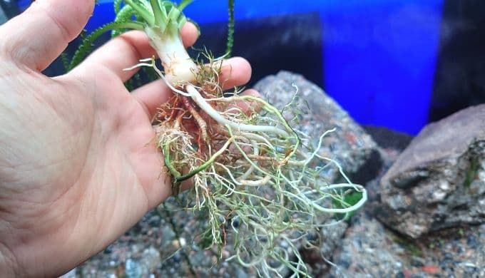 どれも水草レイアウトではあまり使われない種ですが、ワイルドな見た目がコンクリに似合うかなと思い選びました。