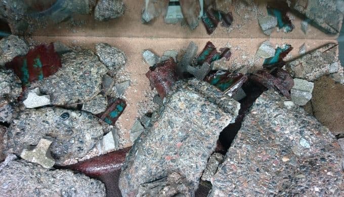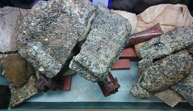 まず、鉄管を2つ配置してその上に大きめのコンクリブロックを配置。