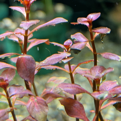「丸葉」「赤色」を併せ持つ水草は少なく、独特の雰囲気を持っています。